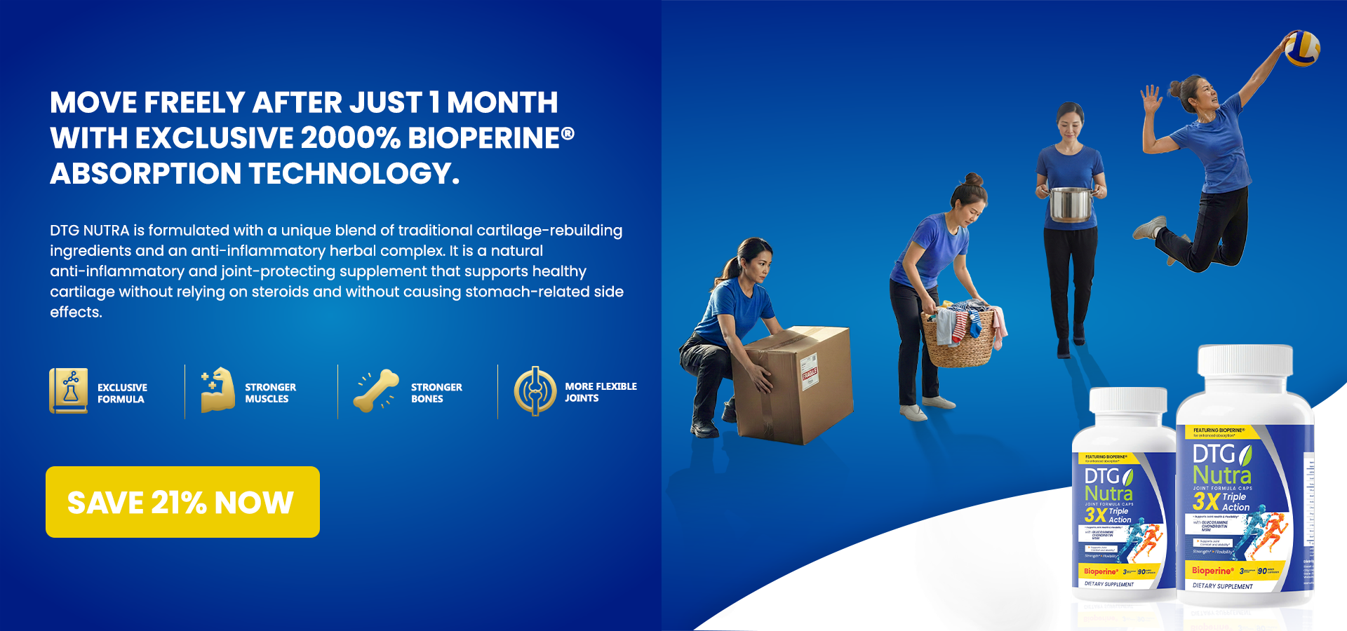 93.7% of DTG NUTRA customers reported a significantreduction in joint pain within the first 60 days of use.